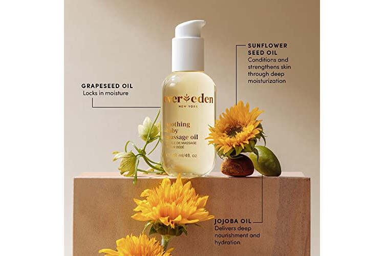 Evereden Soothing Baby Massage Oil 4 fl oz. | Clean Baby Care | Non-toxic and Fragrance Free | Clean Ingredients