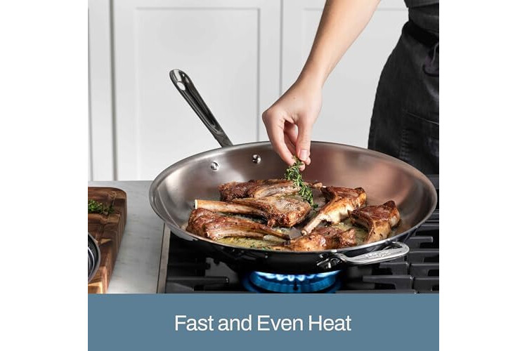 Fast and Even Heat - D3 tri-ply is fully bonded to the rim for professional performance & durability. The high quality 18/10 stainless steel surface sears to perfection and is ideal to deglaze for pan sauces.