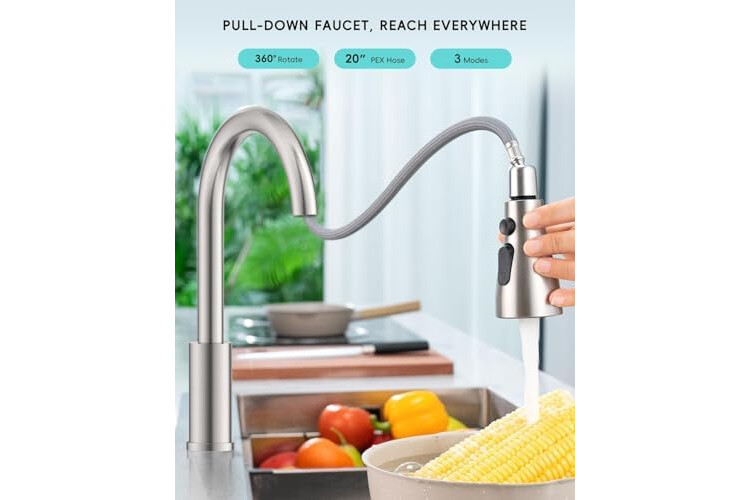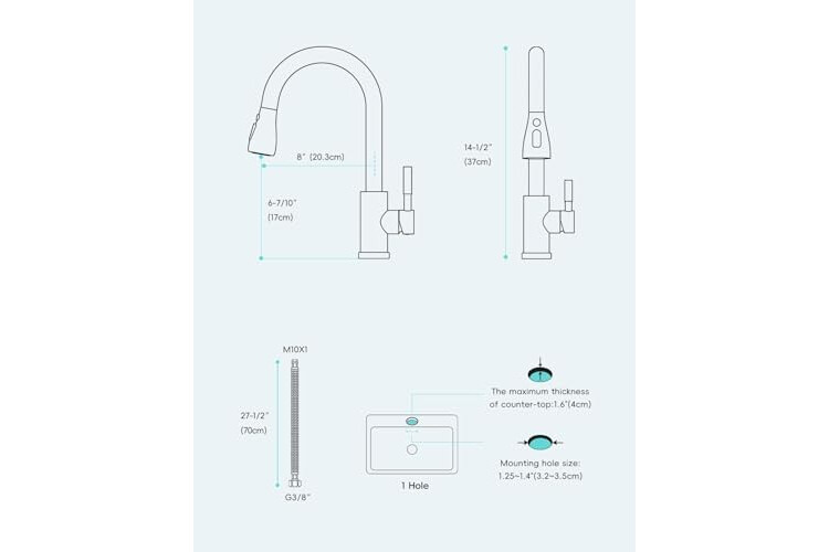 【Easier Installation】--- Installing this single-hole kitchen faucet only needs 4 simple steps in 20 minutes, as our package will come with all mounting accessories and user manual, so y...