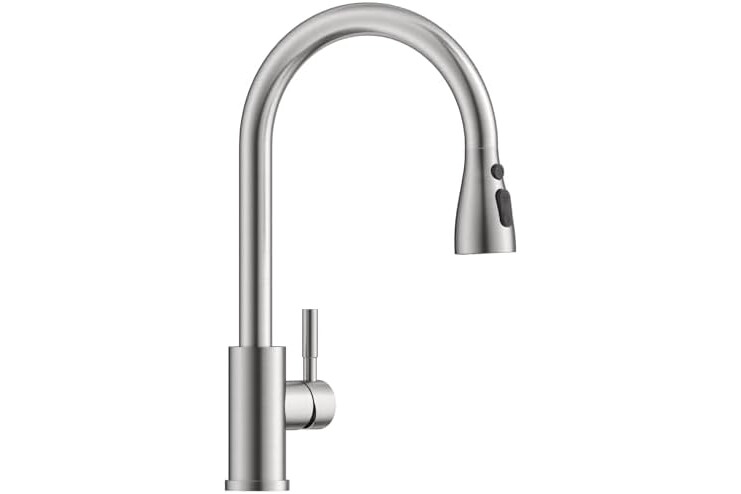 APPASO Brushed Nickel Kitchen Faucet, Modern 3 Modes Kitchen Faucets with Pull Down Sprayer, Stainless Steel High Arch Single Handle Kitchen Sink Faucets 1 Hole Without Deck Plate