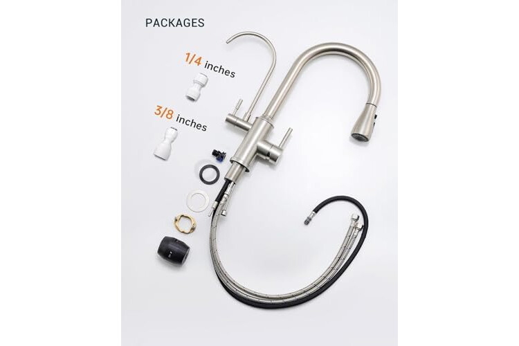 Reliable and High Quality Material: Constructed with stainless steel, this kitchen faucet with filtered water dispenser is built to last, resisting corrosion and ensuring long-term reliability for your kitchen sink. The...