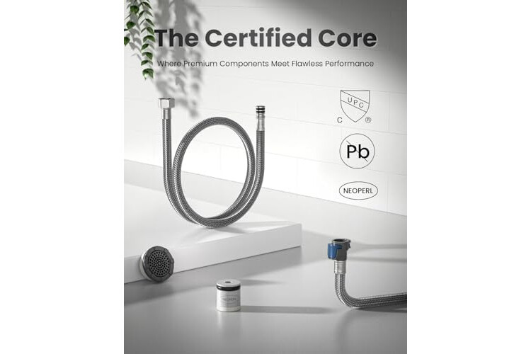 Certified for Your Family's Health: Engineered with CUPC-Certified lead-free hoses & ceramic valve for pure water, plus a certified aerator for a splash-free, efficient flow. Your safety is built in
