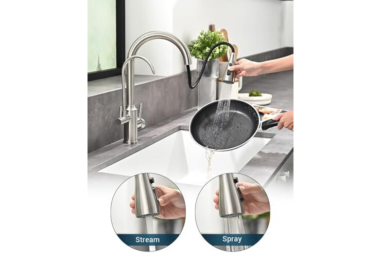 3-Function Sprayer & Filter Faucet: Enjoy the convenience of a three-function sprayer with the APPASO Kitchen Faucet, allowing you to easily switch between regular water flow and a powerful spray for efficient cleaning. The filter faucet feature provides you with peace of mind, knowing that your water is always clean and safe for consumption