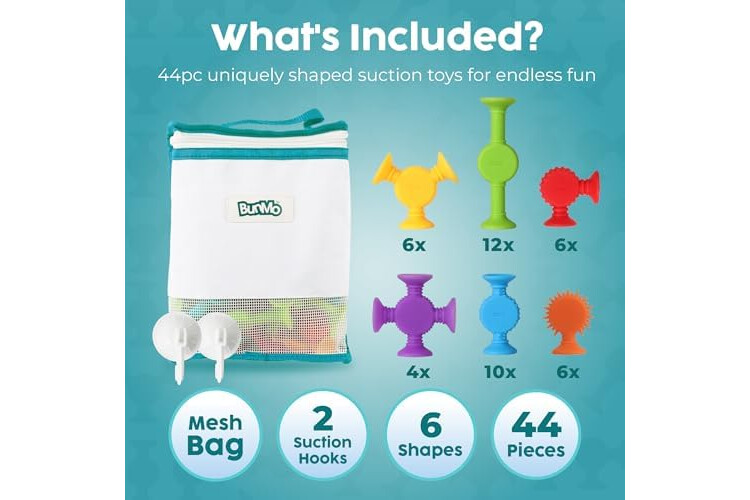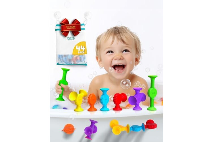 BUNMO Stocking Stuffers for Kids - Toddler Suction Bath Toys - Connect, Build, Create - Toddler Stocking Stuffers - Fine Motor Skills - Stimulating Sensory Fun - Textured 44 Pack