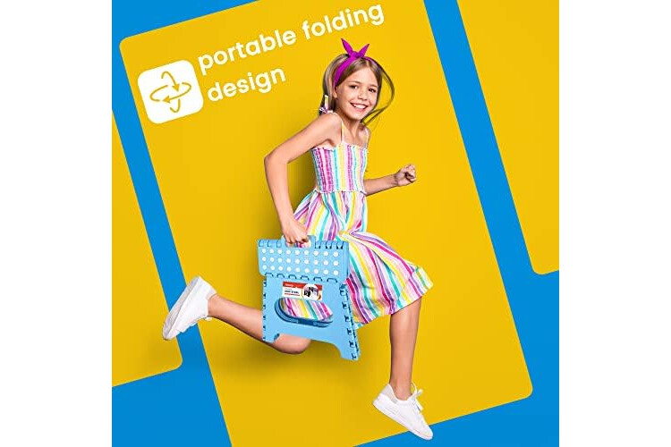 CARRYING HANDLE AND FOLDABLE - Ergonomic carrying handle is designed for easy folding and carrying. Just lift the handle, it will fold easily and quickly in a split second with only one hand. The collapsible step stool’s handle magically appears when the stool is folded flat. Allowing you comfortably carry it around so they can place it where they need it.