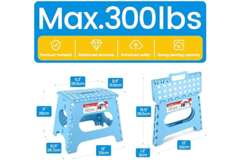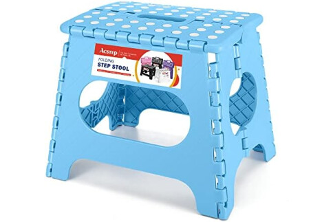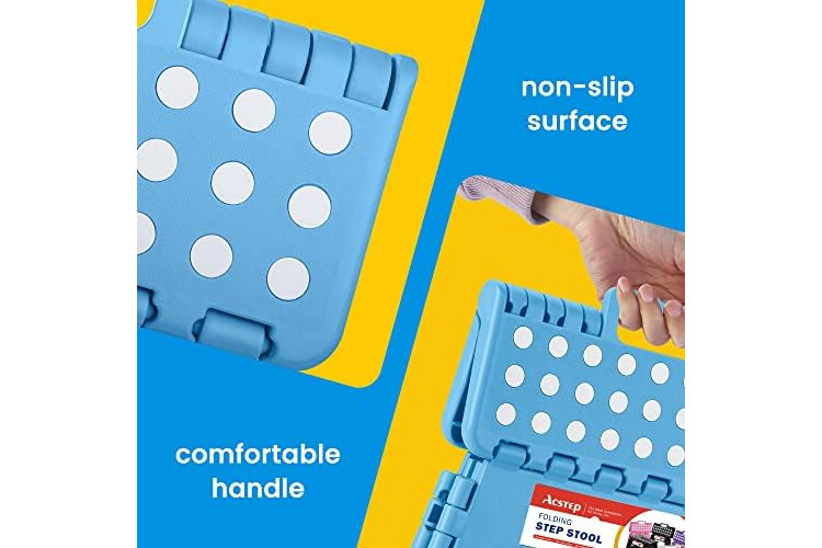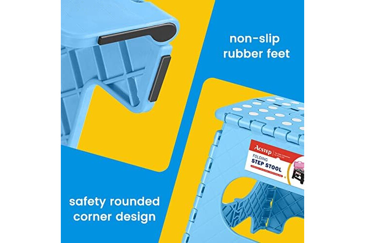 ACSTEP Folding Step Stool for Adults 11 Height Lightweight Plastic Stepping Stool Foldable Step Stool Hold up to 300lbs Non Slip Collapsible Stool Blue