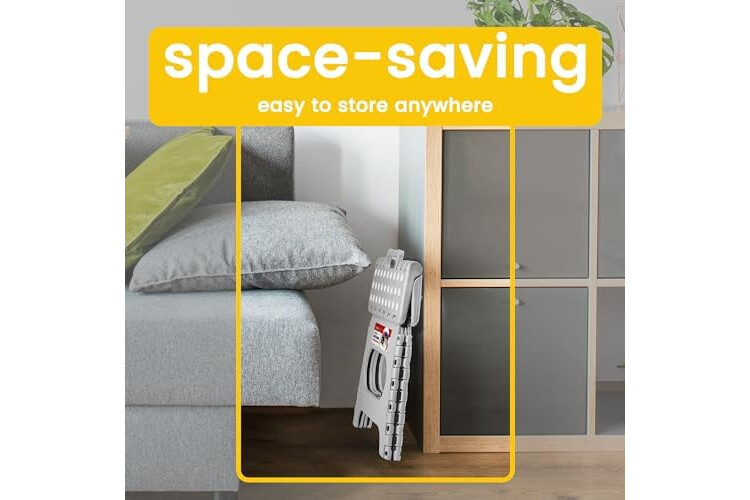 Space Saving & Portable: Folded to only 1.7" wide, easy to store in corners of bathrooms, kitchens, bedrooms, etc. to keep your home organized. The foldable step stool opens and closes easily with just one hand, and can bring it with you for going out.