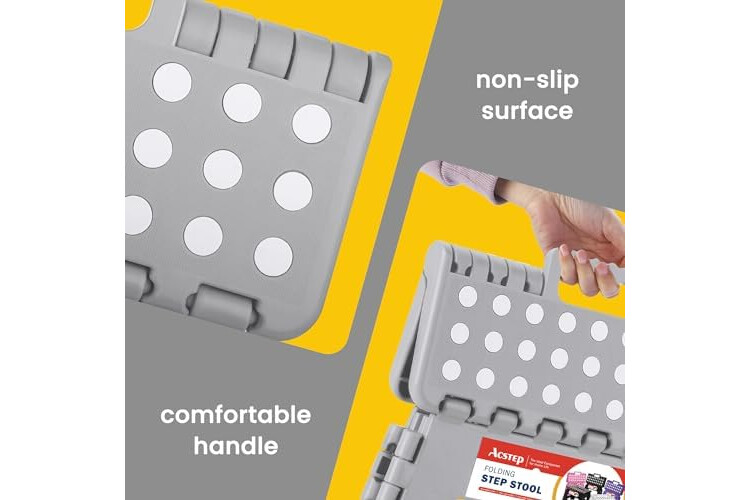 ACSTEP Folding Step Stool 11'' Foldable Step Stool for Kids and Adults Up to 300 lbs, Non-Slip Folding Stools with Portable Handle for Bedroom Kitchen, Bathroom Grey