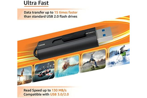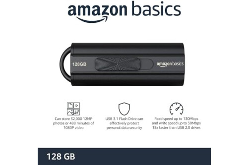 Amazon Basics 128 GB Ultra Fast USB 3.1 Flash Drive, Black