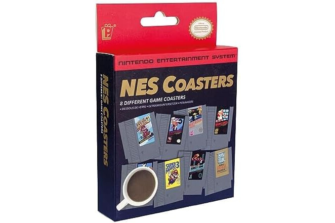 Retro coasters: Add some style to a night of drinks with this set of 8 double-sided coasters that feature some of the NES's most iconic games including Metroid, Donkey Kong, and The Legend of Zelda