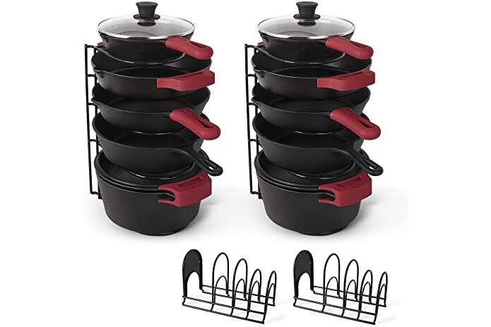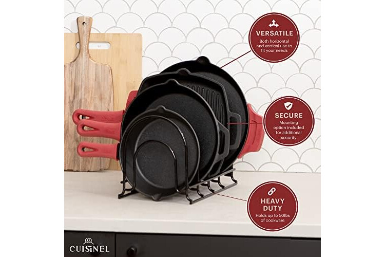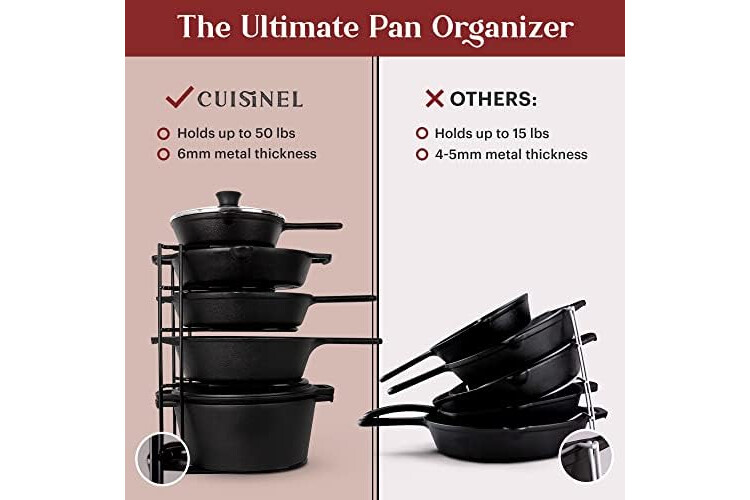 KEEP YOUR KITCHEN ORGANIZED: A tidy kitchen is a happy kitchen - that’s why with our pan organizer, you’ll be on your way to sheer bliss by keeping all your pots and pans neatly organized at all times!