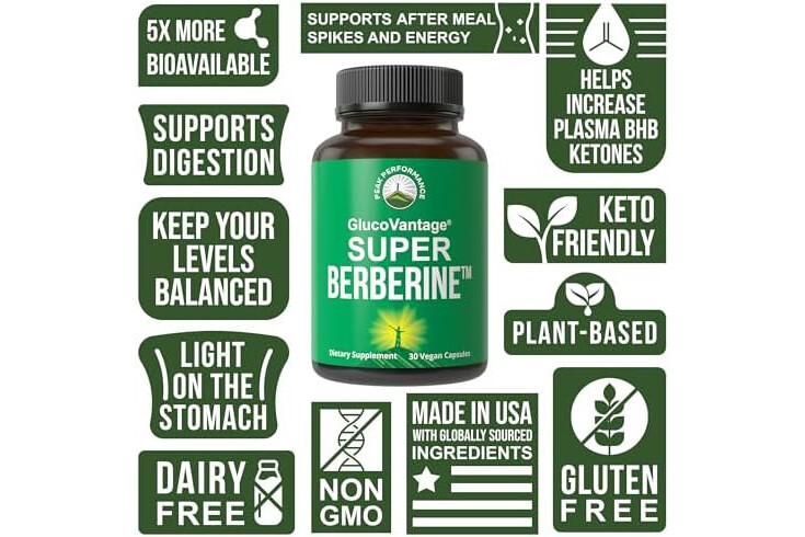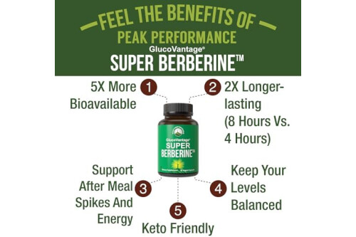 Why not 5X your berberine absorption? Peak Performance GlucoVantage Super Berberine contains Dihydroberberine (DHB), an active metabolite of berberine. Compared to regular berberine, DHB has shown to be up to 5x more bioavailable/absorbable, and 2x longer-lasting (8 hours vs. 4 hours)