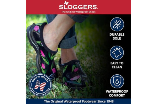 Sloggers Original Waterproof Rain and Garden Shoe for Women– Outdoor Slip-On Garden Clog - Made in The USA with Premium Comfort Insole and Arch Support
