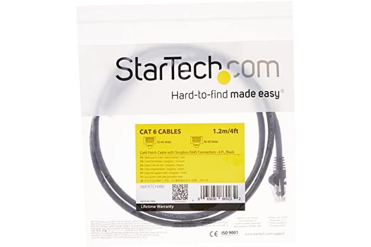 StarTech.com 4ft CAT6 Ethernet Cable - Black CAT 6 Gigabit Ethernet Wire -650MHz 100W PoE RJ45 UTP Network/Patch Cord Snagless w/Strain Relief Fluke Tested/Wiring is UL Certified/TIA (N6PATCH4BK)