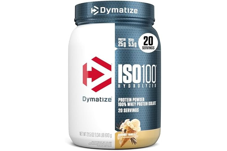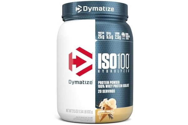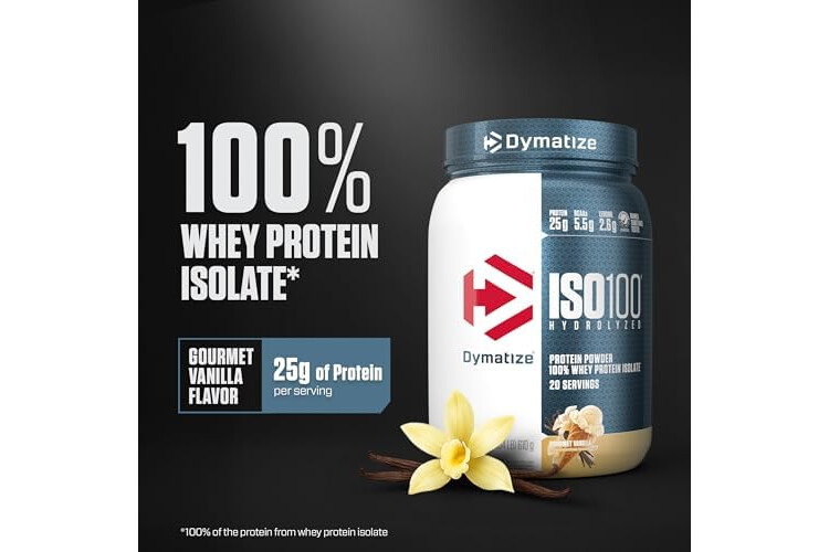 Dymatize ISO100 Whey Protein Powder Isolate, Gourmet Vanilla, 25g of Protein, 5.5g BCAAs, Less Than 120 Cal., Gluten Free, 1g Fat, 1g Sugar, 2g Carb (20 Servings)