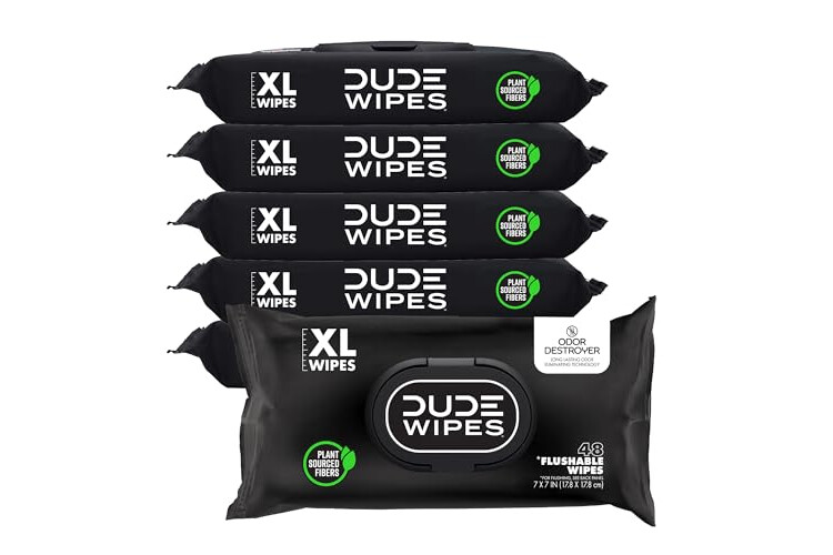 DUDE Wipes - Flushable Wipes for Adults - 6 Pack, 288 Count - Odor Destroyer XL - Deodorizing with Clean Scent - Up to 24 Hours of Odor-Destroying Technology