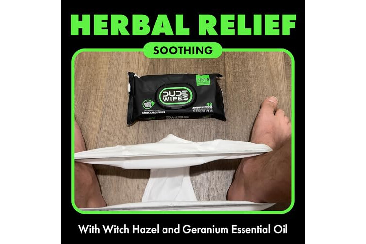 HERBAL INFUSED EXTRA RELIEF: Soaked with hazel & geranium, you no longer have to fear the aftermath of those spicy wings; Made with 99% water & plant-based ingredients, our butt wipes are formulated for a gentle, more refreshing feeling than toilet paper