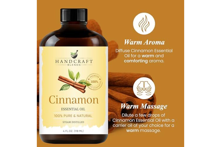 Handcraft Blends Cinnamon Essential Oil – Huge 4 Fl Oz – 100% Pure and Natural – Premium Grade Essential Oil for Diffuser and Aromatherapy, Skin, Massage, Candle and Soap Making Fragrance