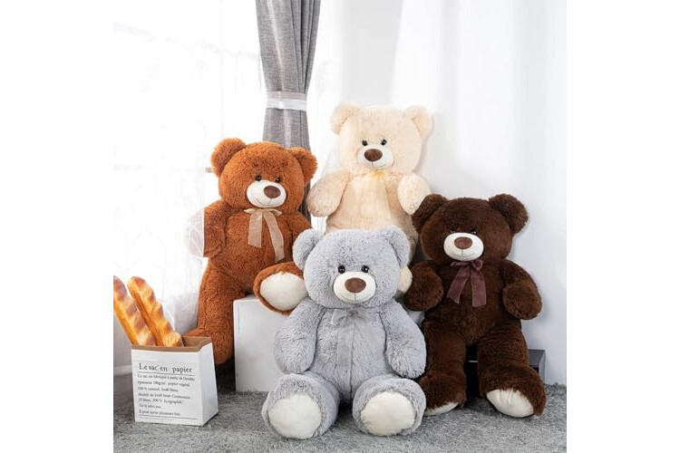 Beautiful Color and Cute Design: Dark Brown body with round soft plush ear, cute bright black eyes which will not fall off, brown nose and beautiful tail. The teddy bear is a great choice for any decoration, you can put the toy in any bedroom or playroom. It is also can be used as pillow, cuddly seat, cushion.