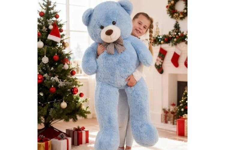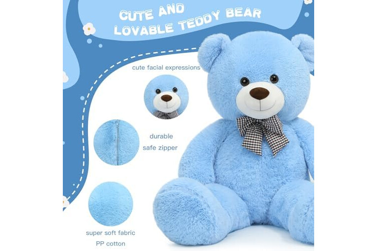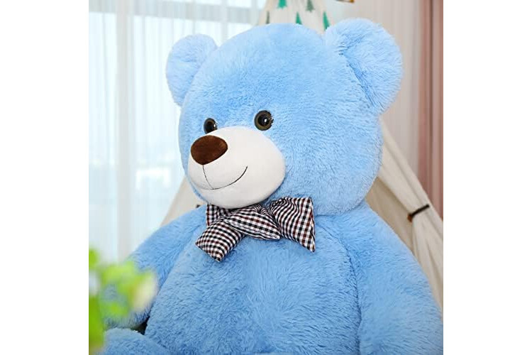 Specifications: Pick one blue stuffed teddy bear for your loved one! Perfect size for hugging and snuggling. Height 47.2 Inches(4ft). Weight 5.29 lb. Choose from multiple colors --- light brown, dark brown, creamy and pink teddy bear;