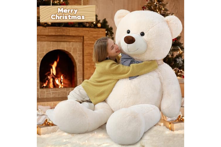 Giant Teddy Bear, 70.8 Inch Big White Stuffed Animal Life Size Plush Bear Toy Gift for Girlfriend Kids Christmas Birthday Valentines Day