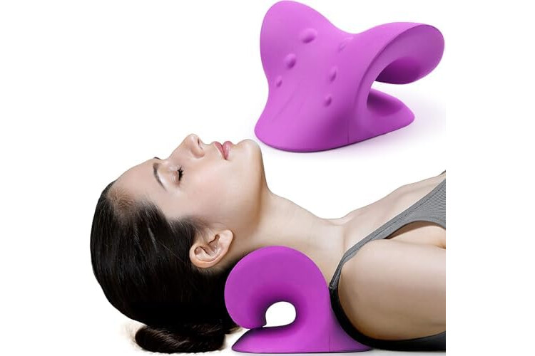 RESTCLOUD Neck and Shoulder Relaxer, Cervical Traction Device for TMJ Pain Relief and Cervical Spine Alignment, Chiropractic Pillow, Neck Stretcher (Purple)