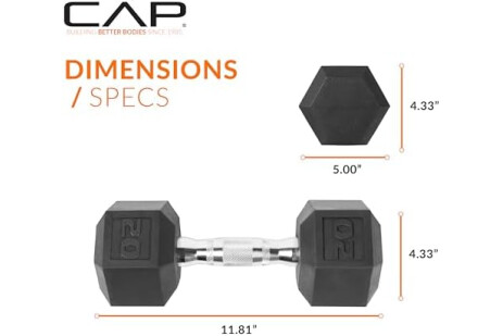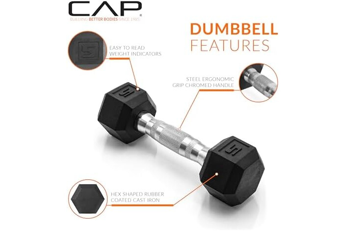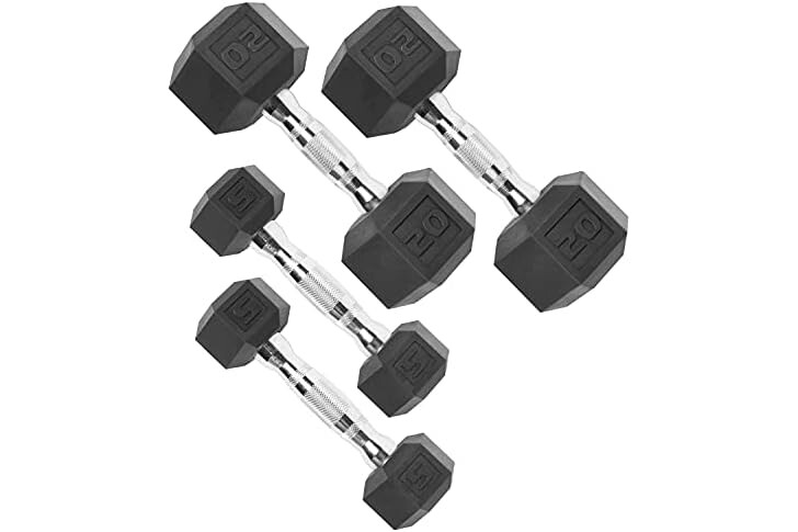 CAP Barbell 50lb Set of Coated Hex Dumbbells, 5lbx2 and 20lbx2