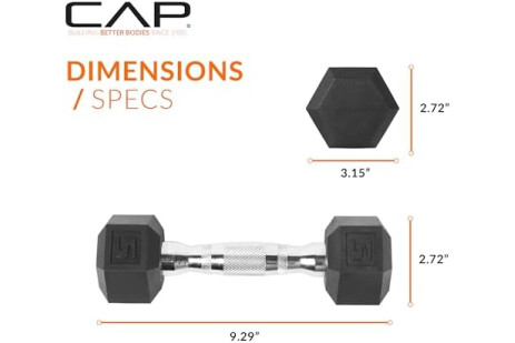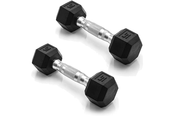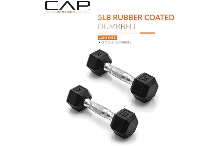 CAP Barbell 5 LB Rubber Coated Hex Dumbbell Hand Weight - Pair | Chrome Handle