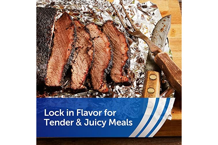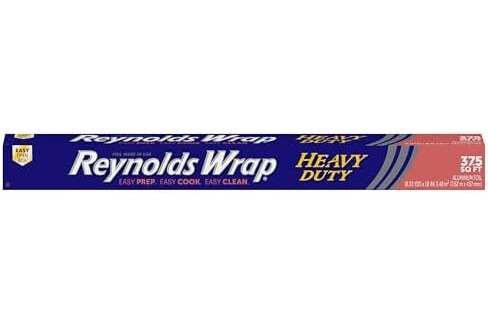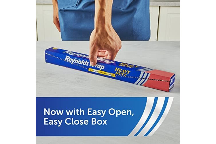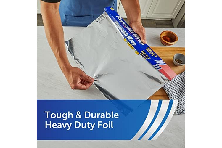 Reynolds Wrap Heavy Duty Aluminum Foil stands up to the high demands of your favorite dishes, making it perfect for cooking that calls for high-quality performance. The thicker, more durable gauge adds extra strength to stand up to your toughest cooking jobs. Plus, the extra wide aluminum foil heavy duty roll gives you more coverage for larger jobs. Durable heavy duty foil is perfect for baking your Thanksgiving turkeys or Christmas roasts to keep the meat tender and juicy. Use this thicker aluminum foil roll to create durable food packets to infuse your side dishes with savory herbs and spices while locking in flavor and moisture as they cook. This reusable tin foil also prevents grease and food splatters by covering pans in the oven or on the stovetop to keep things clean. Heavy duty Reynolds Aluminum Foil is easily moldable to wrap leftovers to get a good seal for storage in your refrigerator or freezer. With so much versatility, plus over 70 years of trusted quality, you can rely on Reynolds Wrap Aluminum Foil to make prepping, cooking and clean-up easier—and more fun!