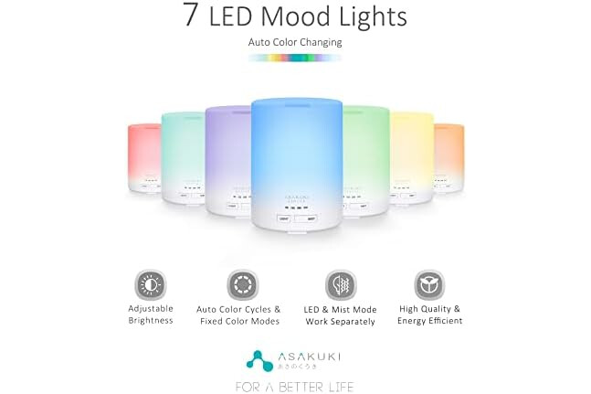 ASAKUKI Essential Oil Diffuser, 5-in-1 Quiet Humidifier, Home Fragrance Aroma Diffuser with 7 LED Color Changing Light and Auto-Off Switch (Pure White)
