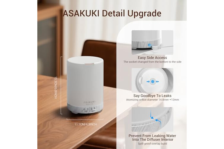 ASAKUKI 300ML Essential Oil Diffuser, Quiet 5-in-1 Premium Humidifier, Women's Day Gift, Home Fragrance Aroma Diffuser with 7 LED Color Changing Light and Auto-Off Switch -White