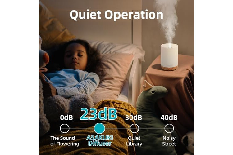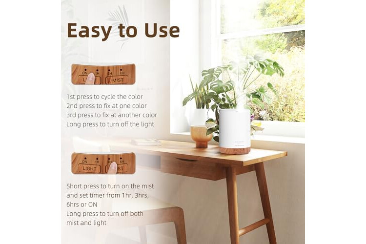 [Suitable for Home Use] Compact size, 300ml water tank, 4 timed settings, ambient light, and auto shut-off button are all features of the ASAKUKI oil diffuser. It is simple to set up and use on a desk, dresser, nightstand, or other hard surface