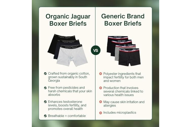 Organic Jaguar Men's Boxers, 3-Pack – 100% Organic Cotton, Sustainable, Elastic Waistband, Extended Length Boxer Briefs (US, Alpha, XX-Large, Regular, Black/Blue/Grey)