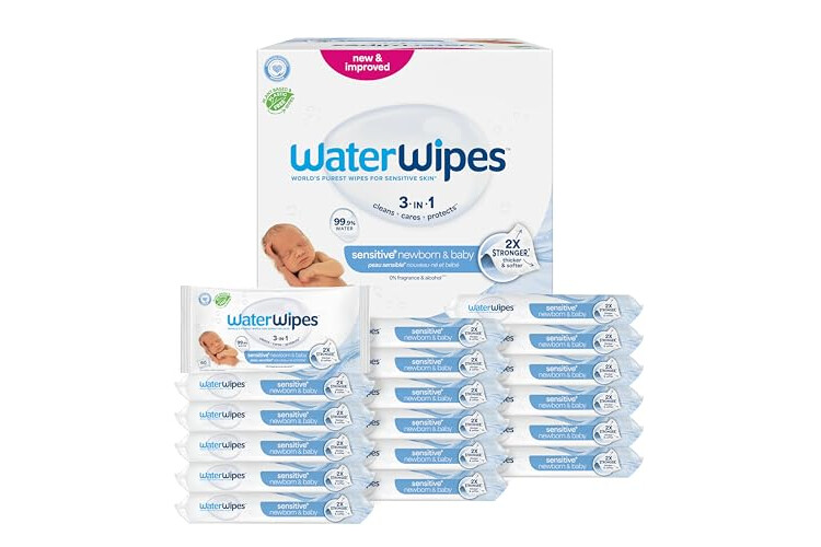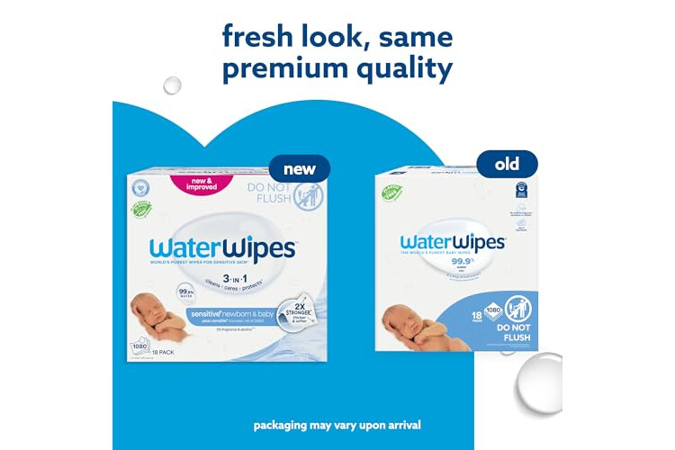 WaterWipes Sensitive+ Newborn & Baby Wipes, 3-In-1 Cleans, Cares, Protects, 99.9% Water, Unscented & Hypoallergenic, 1080 Count (18 Packs)