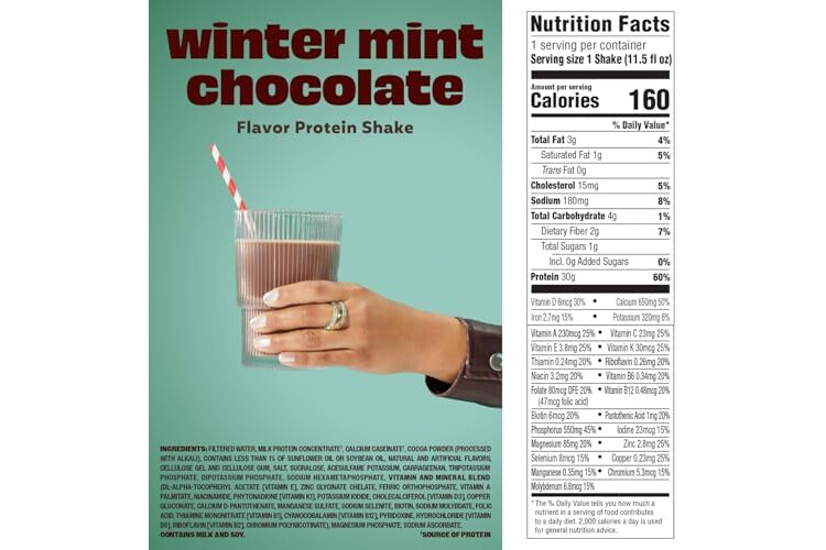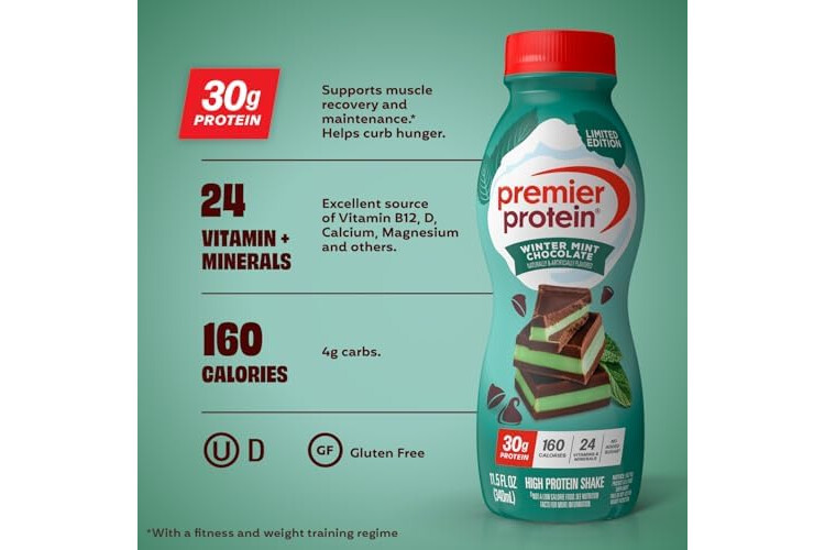 Premier Protein Shake, Limited Edition, Winter Mint Chocolate, 30g Protein, No Added Sugar, 24 Vitamins & Minerals to Support Immune Health, 11.5 fl oz, 12 Pack