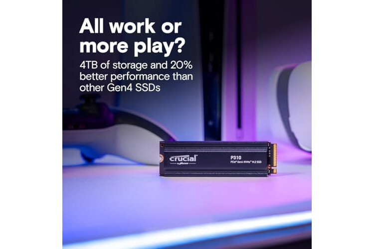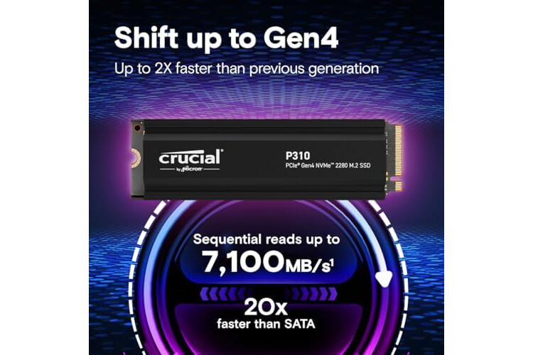 Crucial P310 1TB PCIe Gen4 2280 NVMe M.2 SSD with heatsink Up to 7,100MB/s – with Acronis Offer, Internal Solid State Drive (PC) – CT1000P310SSD5-01