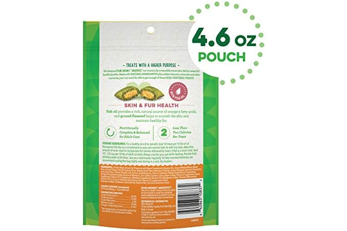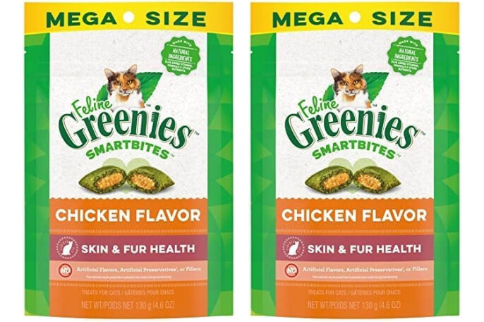 Greenies Feline Smartbites Skin & Fur Crunchy and Soft Natural Cat Treats, Chicken Flavor, 4.6 oz. Pack (Pack of 2)