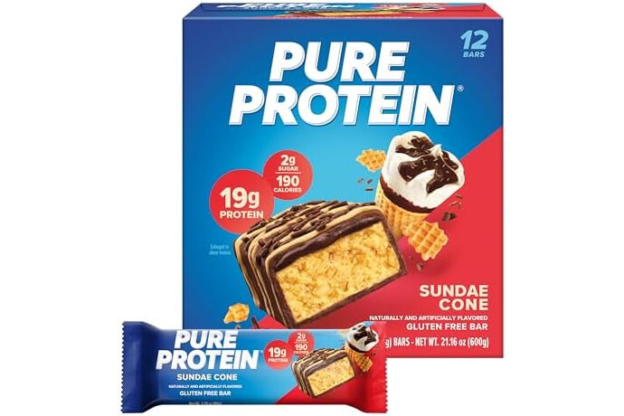 Pure Protein Bars, High Protein, Nutritious Snacks to Support Energy, Low Sugar, Gluten Free, Sundae Cone, 1.76oz, 12 Count (Packaging May Vary)