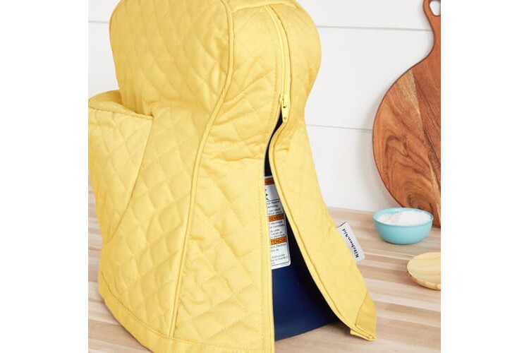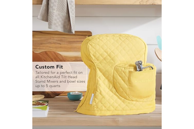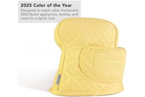 KITCHENAID Fitted Tilt-Head Stand Mixer Cover with Storage Pocket, Quilted 100% Cotton,14.4"x18"x10", Butter Yellow
