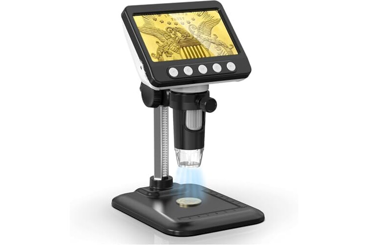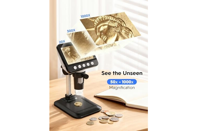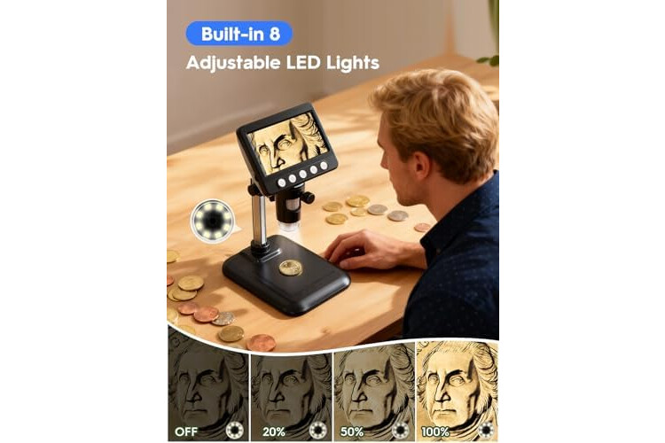 Coin Microscope, 4.3" LCD USB Digital 1000X Coin Magnifier with 8 Adjustable LED Lights, 1080P PC View Compatible with Windows/MacBook for Adults Kids