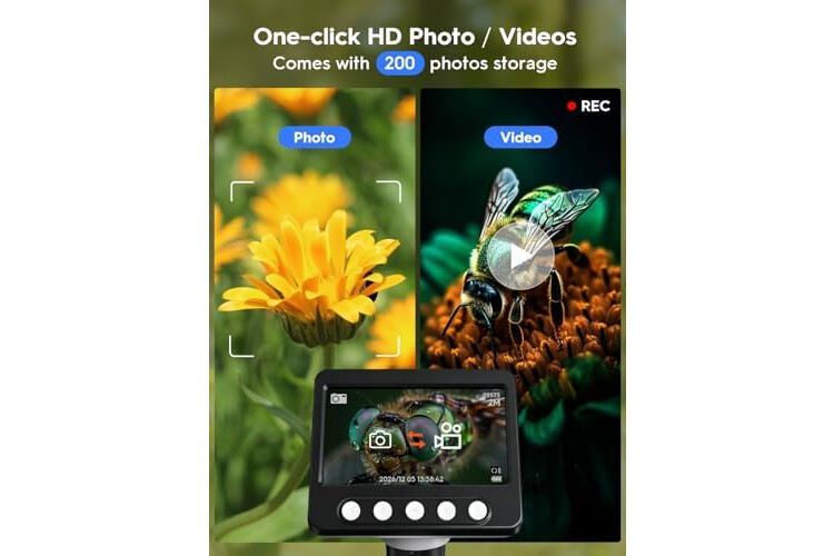 50X-1000X Magnification - allows to zoom in and see the incredible details of observations at a magnification range from 50X to 1000X. The actual magnification differs due to the screen size, the distance between the camera, and the observations.