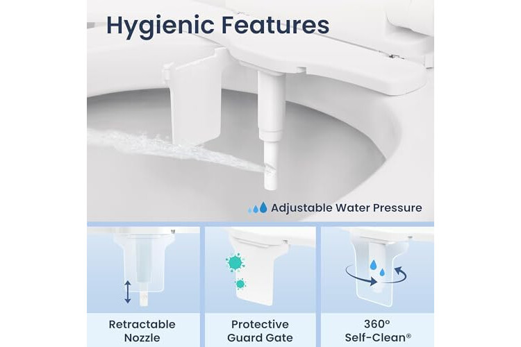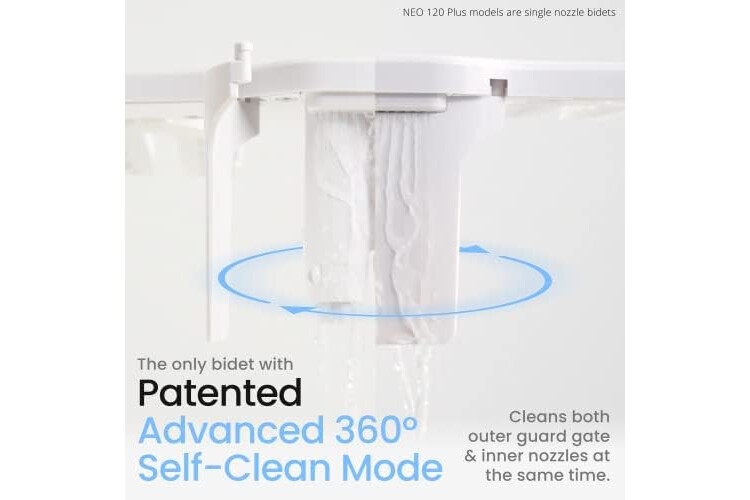 NEVER-BEFORE-SEEN INNOVATION – The only bidet that flips up and out of the way for easy cleaning of hard-to-reach spots. Activate the 360° Self-Cleaning mode for panoramic cleaning of both the guard gate and nozzles.