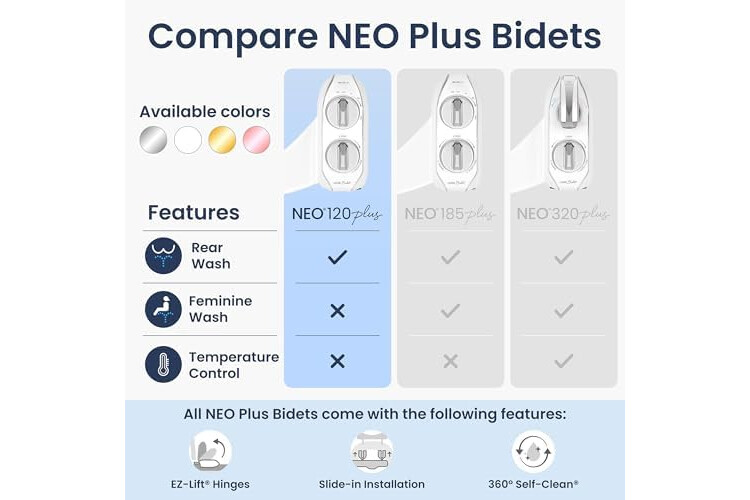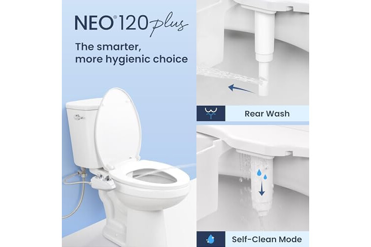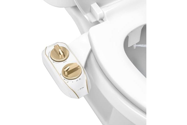 LUXE Bidet NEO 120 Plus - Single Nozzle, Non-Electric Bidet Attachment for Toilet Seat, Patented Slide-In Install, 360° Self-Clean, EZ-Lift to Clean, Rear Wash (Gold)