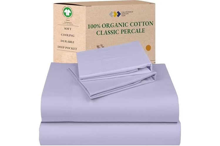 California Design Den Deep Pocket King Sheet Set - Soft 100% Organic Bed Sheets, Crisp Percale, Breathable and Durable Bedding Set - Lavender Mist