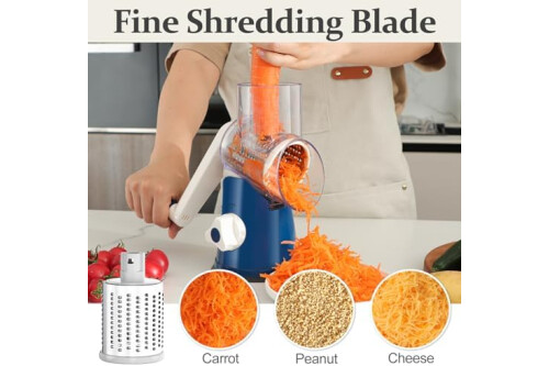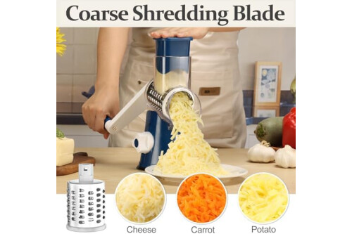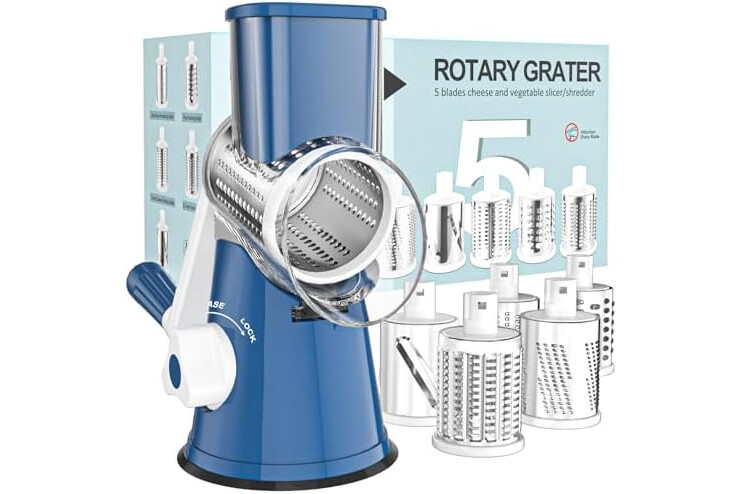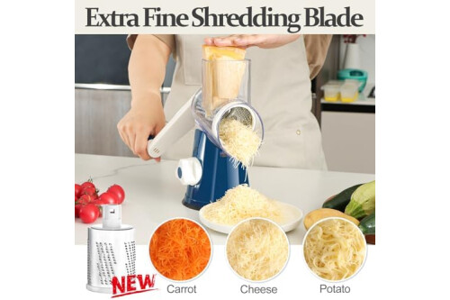 Cambom Rotary Cheese Grater Hand Crank Cheese Shredder for Fresh Cheese, Vegetable, Nuts, Non-slip Suction Base,Five Blades, Deep Blue