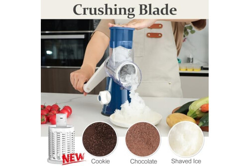 Five Blades: Five Different Blades, coarse shredding blade, fine shredding blade, extra fine shredding blade with different diameter ; One slicing blades; One crushing blade which can be used to crushing ice for shaved ice drink or nuts chip