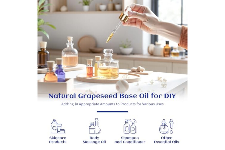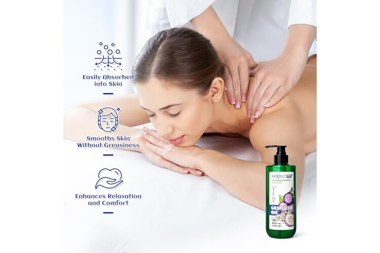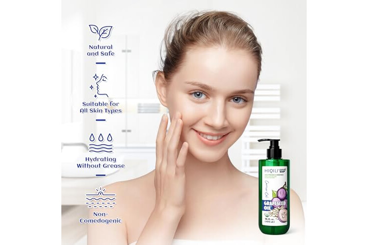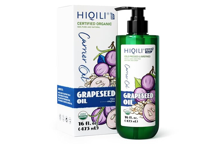 HIQILI 16 Fl Oz Organic Grapeseed Oil for Hair, for Skin, Carrier Oil for Essential Oils Mixing, 100% Pure & Natural-473ML