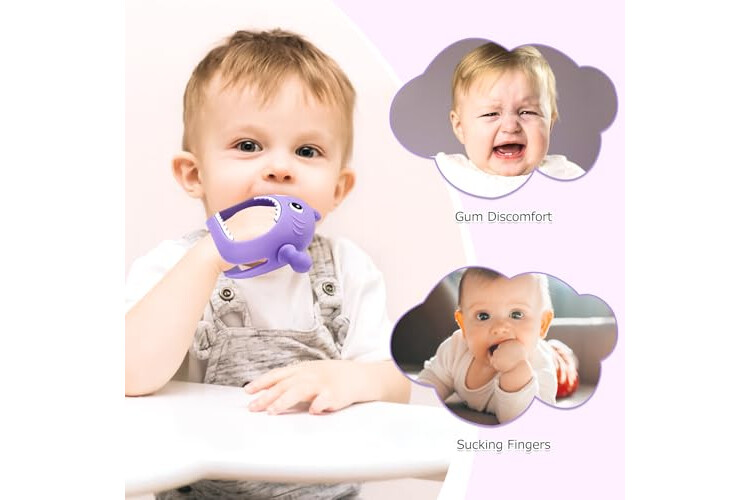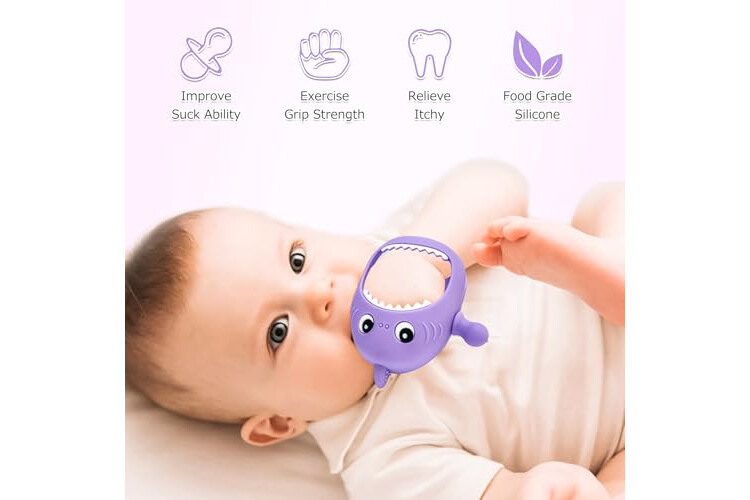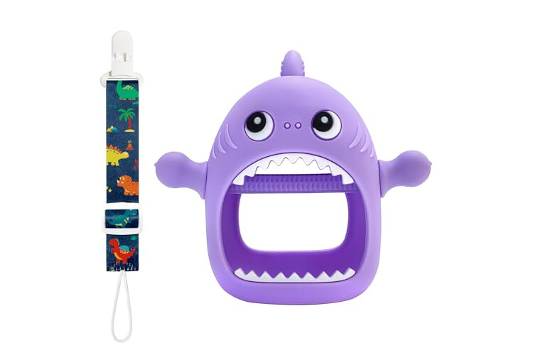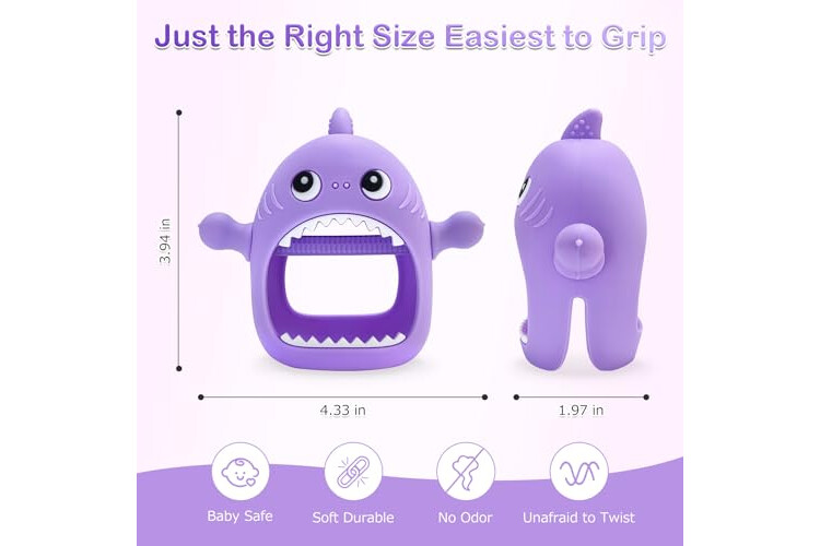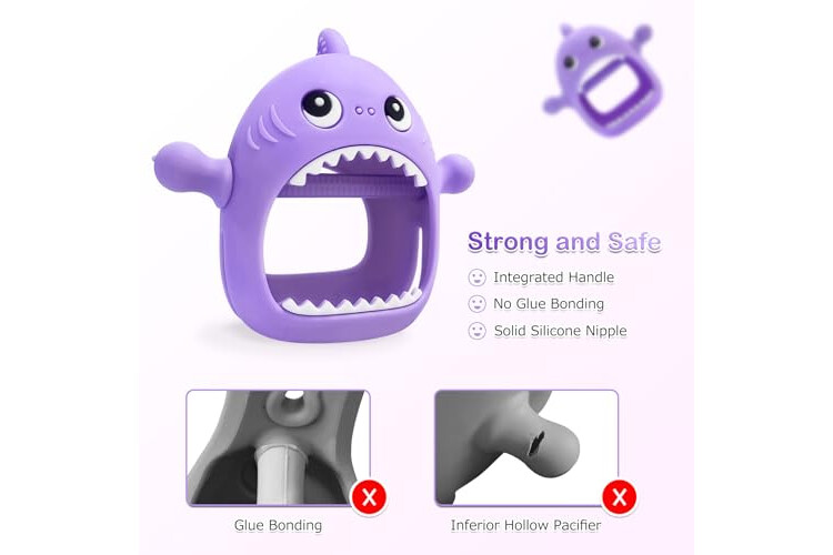 Kpblis Shark Silicone Baby Teether Toy for Babies 0-6 Month, Never Drop Baby Teething Toys for 6 to 12 Months, Infants Hand Teether Pacifiers, Baby Chew Toys for Sucking Needs - Violet