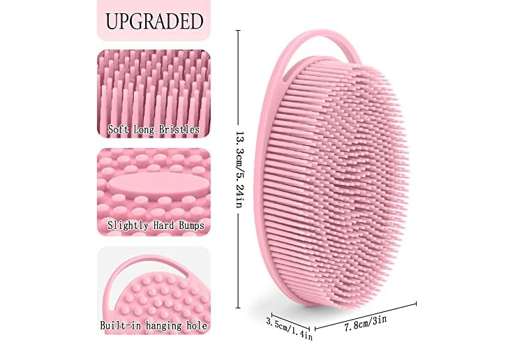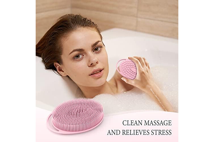 Widely used:The silicone scrub loofah can be a shower brush, facial brush, Massage brush, If you need to, you can also use this as a dish scrubber in your kitchen. Portable size, easy to use.