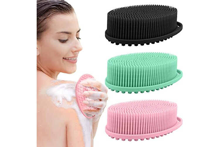 3 Pack Silicone Body Scrubber, Soft Silicone Loofah, Exfoliating Body Scrubber Fit for Sensitive and All Kinds of Skin, Rapid Foaming, Clean and Sanitary